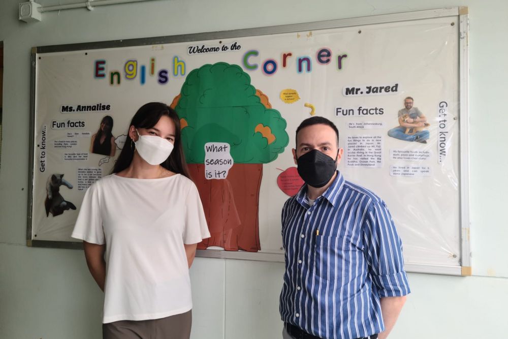 Outside of the classroom, our NETs regularly interact with students, meeting with students before and after school and during recess. Students are given the opportunity on multiple occasions to learn with our NETs, including Campus TV appearances, access to the English Room and participating in our English Fun Days.